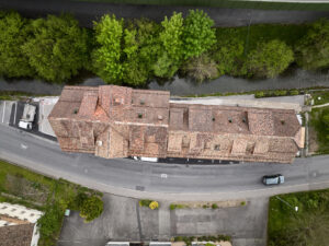 Das riesige Dach mitsamt Schleppgauben hat eine Ausdehnung von 510m2 und ist mit alten Biberschwanzziegeln bestückt. Einzelne Fundstücke sind mit 1806 datiert.